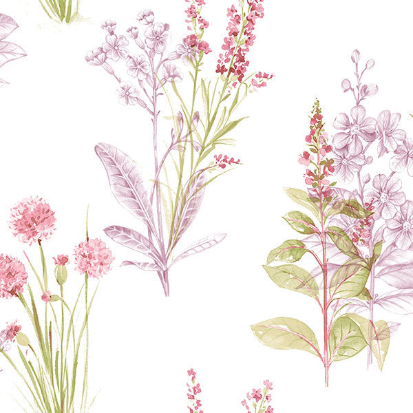 • Purple Pink Floral Toile AB42444 Wallpaper is prepasted . The best selling colour palettes of peppermint & rose, fresh green & petal pink and delft blues create harmony in this timeless collection.
